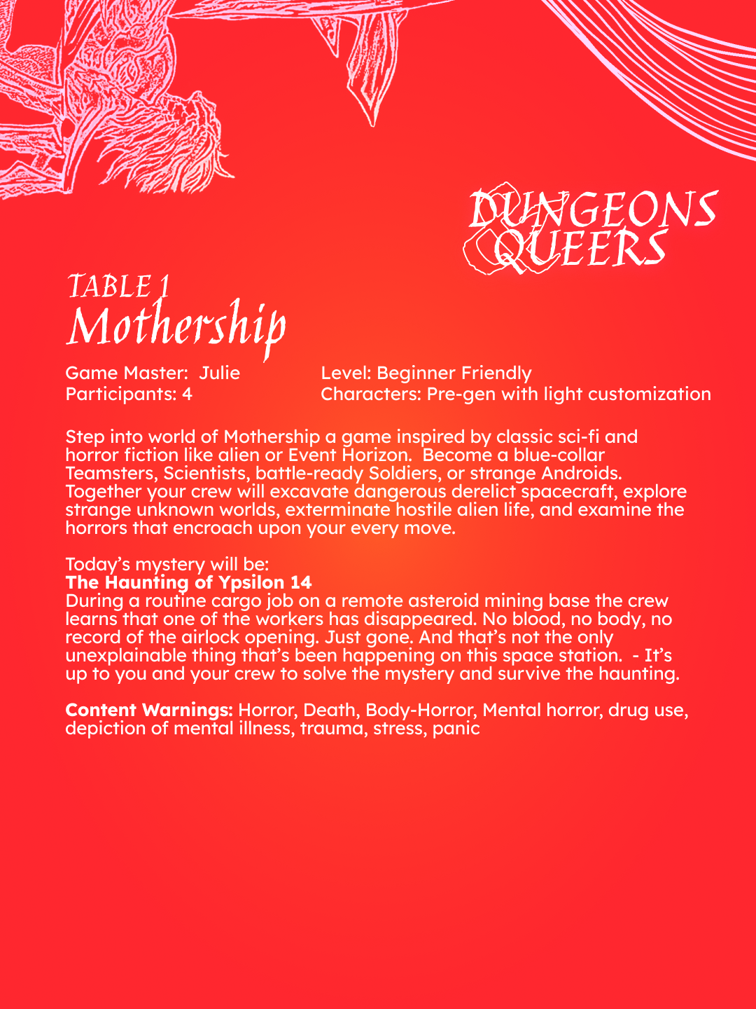 Want to try out slaying a dragon? Fighting aliens? Solving mysteries? Come join Dungeons & Queers!